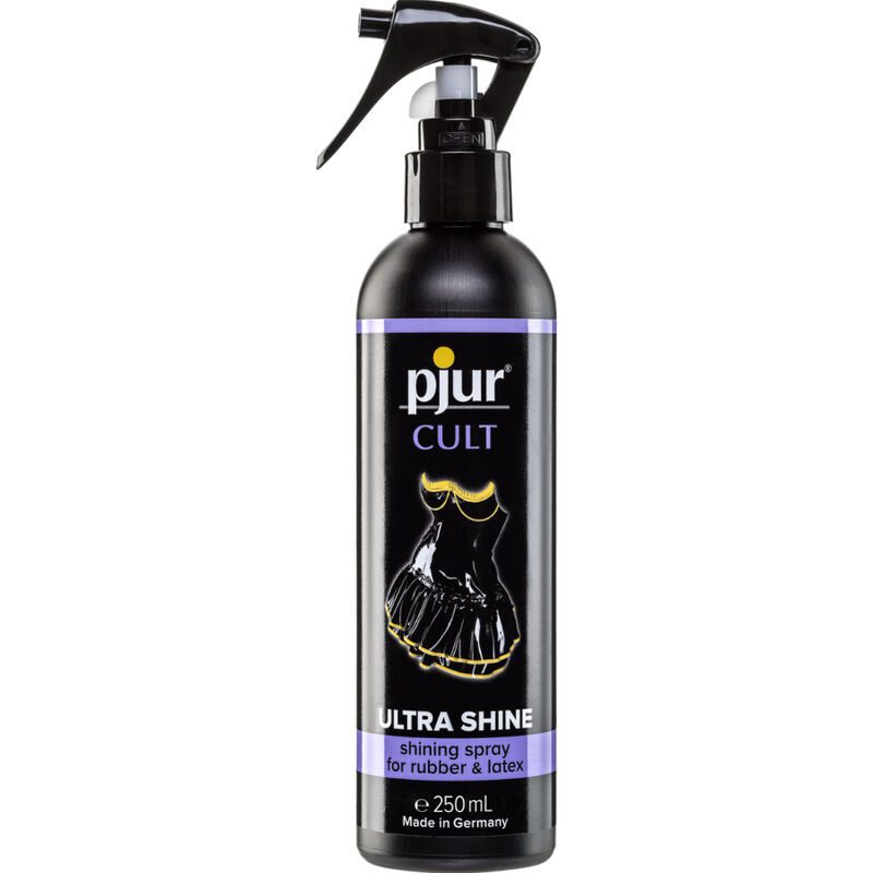 Gummi- und Latexkleidung muss vor allem eines garantieren: Glanz, also im Mittelpunkt stehen. Daher gibt es neben pjur CULT, das als Hilfsmittel zum Anziehen von Gummi- und Latexkleidung verwendet wird, auch pjur CULT ULTRA SHINE. Wie der Name schon sagt, verleiht dieses Produkt nicht nur einen Ultra-Glanz, sondern schützt und pflegt das Material auch. Die Formel ist langanhaltend und schmutzabweisend, klebt nicht und hinterlässt keine Flecken.