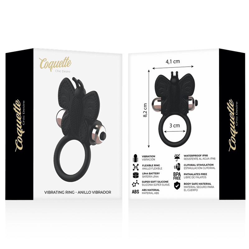 Übernimm die Kontrolle über das Vergnügen deines Liebhabers !! Nehmen Sie ihn überall hin mit und genießen Sie die kraftvollen Vibrationen des Vibrationsrings Coquette Chic Desire. Umhüllt von einer Luxustasche ist dieser Ring vollständig geschützt und überall einsatzbereit.